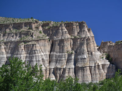 As we near the trail, this is our first view. This cliff has layers upon layers of erosion that has formed these beautiful tent like formations.