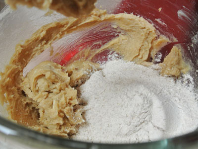 I found a great recipe from “Brown Eyed Baker” which I used as a guide. I have found through trial and error that the altitude here in Albuquerque has affected my baking and I have to make adjustments. For this recipe I needed more moisture in order for the cookie batter to hold together. I started with all purpose flour, whole wheat flour, salt, baking soda, dark brown sugar, honey and unsalted butter. Not pictured is the addition of whole milk.