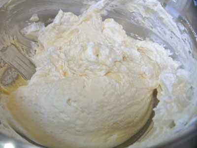 Add the egg mixture to the mascarpone cheese and beat on medium until well combined.