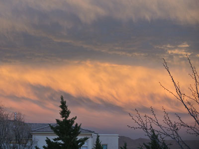 And on the same day Joe and I sat in awe of this sunset.  It looked like a painted sky with swirling pink and yellow hues!