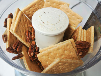Run the graham crackers and pecans through a food processor.