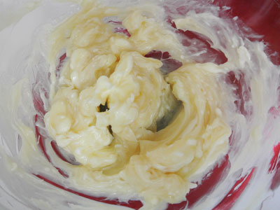 Add 3 eggs and blend together with the creamed butter.