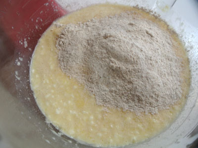 Add the warmed milk and yeast to the mixture and blend.