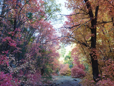 We first visited the 4th of July trailhead in August. We were looking for a place to hike where it was cooler because at that time the temperature was quite warm in Albuquerque and was too hot for outdoor activities. 4th of July trailhead is located on the south and west side of the Manzano Mountains. It’s about 1 1/2 hours to get to the trailhead with the last 6 miles being a dusty dirt road dotted with big rocks and potholes to navigate through. It’s slow going that last bit but well worth the trip. When the colors began to change we knew that 4th of July trail would be packed with people on the weekend with very little parking so we went during the week. We arrived around 3:30 in the afternoon. As it turned out our timing couldn’t have been more perfect. The sun was lower and coming through the trees lighting them up in their most vibrant colors. From the August greenery to the October colors, the trail was indescribable. I wouldn’t have recognized it had we not just been there a couple month’s earlier. The colors were even more vibrant that I could imagine. And as we walked I tried to get every color of leaf which ranged from an off white to a vibrant purple. Almost every color was represented and it reminded me of an enchanted forest from a fairy tale. I can’t imagine another place quite like 4th of July trailhead! Come take a walk with us and enjoy the colors of New Mexico!