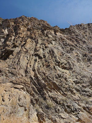 This was a sandy slope along the Rio Grande with tall sandstone formations above us. We had to watch our step as the path kept shifting under our feet. At that point we turned around to head back.