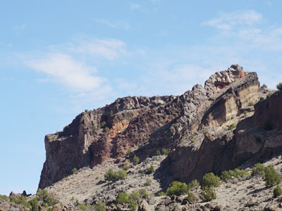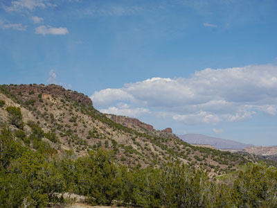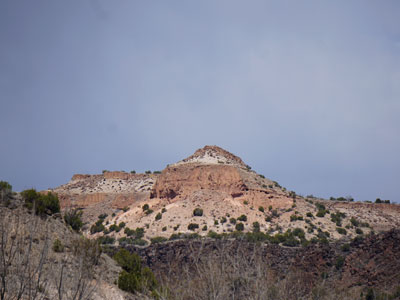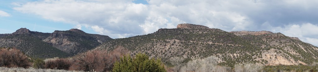 Diablo Canyon is located in a remote area North and West of Santa Fe. It’s about a 1 1/2 hour drive from our home in Northwest Albuquerque. Joe and I drove up to the canyon on Easter Sunday and had the most amazing day! We saw many folks hiking, some biking, rock climbers and many trailers filled with ATV’s to enjoy the rough terrain. We even saw a hang glider floating in the wind. There were two trails that we hiked, this one through the Diablo Canyon and one along the Rio Grande River about 3 miles further West called Buckman. To get here we traveled a very rough dirt road called Old Buckman Road which is pure washboard for a little over 10 miles. It was like getting a vibrating massage as you travel down this dusty dirt road. We read in our guidebook that parts of the movie 3:10 to Yuma were filmed in this canyon. We got there early and enjoyed several hours before the sky started to get dark with a few clouds blowing in. When we left there wasn’t a parking place to be found. Many families had the same idea as us and wanted to enjoy the holiday outdoors where it really does feel spiritual at times with such beauty all around us.