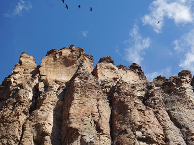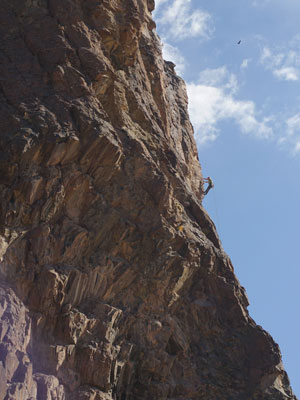 As we wandered to the other side I captured this climber high above us with the blue sky and a crow flying overhead.