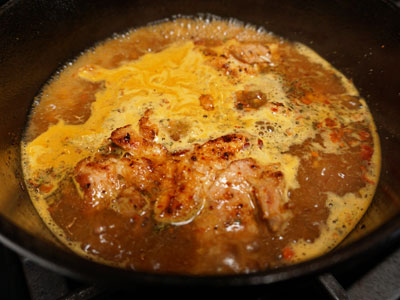 Bring the soup mix to a boil then add the chicken back to the skillet.
