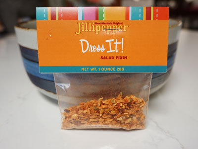 Time to make the Jillipepper dressing. It’s a tiny little mix that includes dehydrated Hot Fiesta Peppers, Sugar, Sea Salt and Black Pepper. Very simple ingredients yet this makes a flavorful dressing and/or marinade.