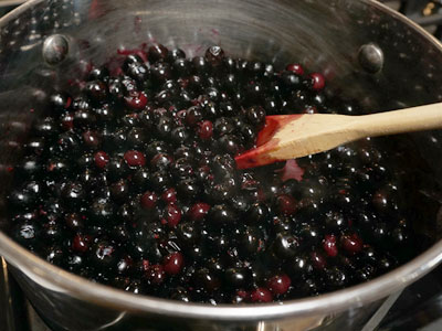Heat a medium sized saucepan over medium heat and add 16 – 18 ounces of blueberries, along with the lemon juice and zest.