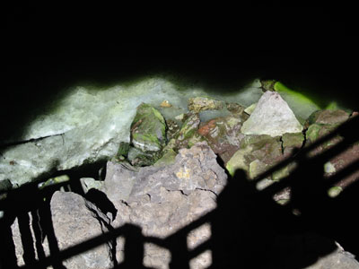 This is not the best picture to show the ice. The sun was too far overhead to shine a light on the ice. While we could see it in person it was not easy to get in a photograph.