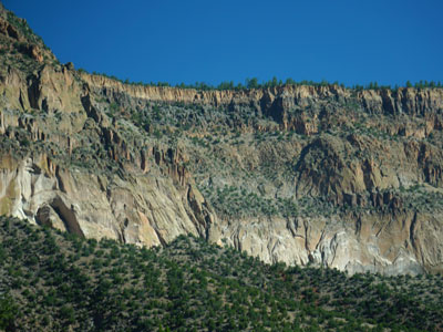The Jemez National Recreation Area is located within the Jemez Mountains which is approximately 50 miles north and west of Albuquerque. Jemez is an easy 1 hour drive for Joe and I. We’ve explored many cultural landmarks as well as gorgeous landscapes that includes geological formations of granite and red rock as well as volcanic rock. The mountains are full of peaks and valleys, mesas of every color and box canyons to explore. Over the last couple of years we have taken many day trips to Jemez. Every path leads to something different such as old railroad tunnels, water falls, hot springs, a soda dam, historical ruins and a goblin colony. These are just a few of the many sights to see in Jemez. The mountainous areas are gorgeous with Cottonwood trees along the rivers and streams that attracts fly fishermen and Aspen trees in the higher elevation areas. The people who live within the Jemez Pueblo maintain many of the customs and traditions of their ancestors. It’s easy to see why the people of the Jemez Pueblo would make this area their home. In the summer Joe and I love to escape to Jemez where the mountainous areas are a good 10 to 15 degrees cooler than in the city. The Jemez area includes little side roads, many of them dirt roads, that will lead you down a path of awe and bewilderment. It’s hard to capture the beauty of this enchanted area but I hope you can imagine it and maybe one day have a chance to experience it in person.