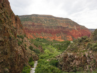 To the right you can see the steady steam that flows through the dam from the Jemez river.