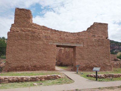 The history of the Jemez Historic Site goes back 700 years. According to the information provided at the historic site, the Jemez Indians established the Pueblo of Giusewa where the land was fertile and game was plentiful. They lived peacefully for many generations until a group of Franciscan missionaries arrived and tried to convert the Pueblo people to Christianity. The Franciscans demanded allegiance and used forced conversion at times to deny the people to practice their native rituals. The Franciscans designed a massive stonewalled church which was constructed with Pueblo labor. It was massive in size with a rare bell tower and was named San Jose de los Jemez. The site was occupied until the Revolt against the Spanish in 1680. The historic site is off of Hwy 4 just past the Village of Jemez Spring, and before you reach the Jemez Soda Dam.