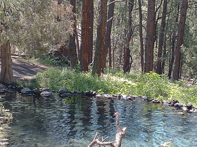 We parked at “Battleship Rock’ Camping area and took the East Fork Trail 137 for a 3.4 mile out and back hike to McCauley Hot Springs.