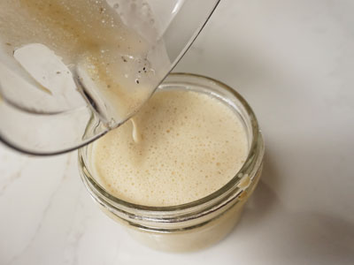 Now that the egg has been pasteurized it’s time to make the dressing. The easiest way to do this is with a hand blender. If you don’t have one you can whisk it, it will just take more time. Add all the ingredients into your blender cup. Blend for 10 seconds.