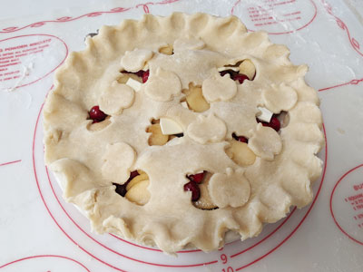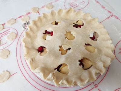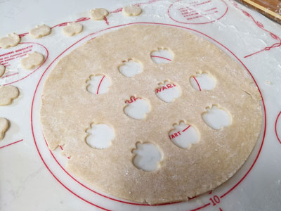 Roll out the second disk of dough that will top the pie. I used a cookie cutter to cut out little apples but you can roll it out and then make slits to vent the pie if you wish.
