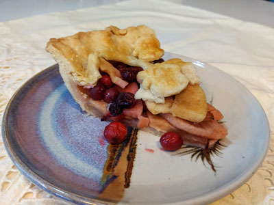 For many years Apple Cranberry Pie has been one of our favorite holiday pies. Regardless of whether it’s Thanksgiving or Christmas, this pie nearly always ends up on the menu. It’s a recipe that I’ve been using since I picked up the 1988 edition of Southern Living’s Annual Cookbook. The original recipe included apples, cranberries and blackberries, however over the years after trying different berry combinations, my family preferred the apple and cranberry filling best. In October during apple season I tend to pick up a variety of apples to make pie filling to put up in the freezer. I also keep frozen cranberries on hand to use just in case I can’t find fresh. I’ve found that pie filling maintains best when vacuum sealed and will keep in the freezer for up to 2 month’s which makes pie making so much easier. This year I made enough filling for 2 pies. Whenever I bite into a slice of pie it becomes my favorite at that moment. I’m a pie fanatic and although no one would ever say my pies are pretty, I’ve never had a complaint about how they taste.