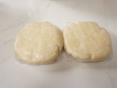 Flatten the dough into disks and wrap with plastic wrap. Chill dough for 45 minutes or up to 2 days in the refrigerator.