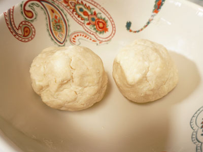 The vodka makes this dough easier to mold and work with. Mold the dough into two even balls.