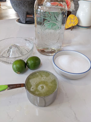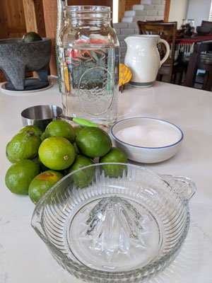 Here’s a cup of lime juice, a cup of sugar and 7 cups of water. I had a couple limes left over to slice and add as garnish.