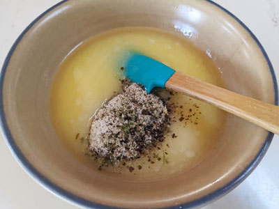 Transfer the chex mix to 9″ X 13″ baking pans. Pour the melted butter and spice mixture over the chex mix and stir well.