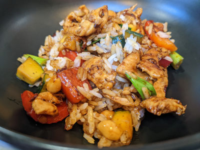 Have you ever had the Kung Pao Chicken at Panda Express? I’ve been searching for the perfect copycat recipe for years and finally found “the one”. It comes from Jamie at Drive Me Hungry. Seriously this recipe is as close as you’re going to get to the Kung Pao Chicken at Panda Express. I would even go so far as to say it’s better. I couldn’t wait to hunt down all the ingredients and get started. Joe has never ordered Kung Pao when we go to Panda because it has zucchini in it. But he ate every bite and said that the sauce even made zucchini taste good. I think I may add some different vegetables next time to get added veggies into our diet. There are a lot of ingredients in the sauce with some that were new to me such as Chinese black vinegar and Lao Gan Ma Spicy Chili Crisp. Every time I try a new Asian dish I learn something new. This version of Kung Pao is a very aromatic dish as well as pleasing to the eye. I hope you enjoy it as much as we do!