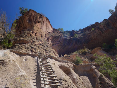 After a tumultuous drought season in New Mexico with record fires, we’ve finally received some much needed rain. The monsoon season arrived in June and gave our national forests some relief. Many of our national forests, state parks and many other trails had been closed to the public due to fire safety. I am happy to say that most if not all are now open. Joe and I couldn’t be happier and anxious to get back up north where the weather is cooler amid so many beautiful hiking trails. Bandelier National Monument is an archaeological site with the remains of cliff dwellings nestled in the Frijoles Canyon. Along the Pueblo Loop trail you will see the tall cliffs that provide natural caves large enough for shelter which we were able to enter by climbing ladders. Some of these ladders are quite high and not for the faint of heart if you have a fear of heights. Halfway through the loop trail is the Alcove House which is a ceremonial cave with a reconstructed kiva. After we successfully climbed to the Alcove House we made the loop back and took the Frey Trail to the top of the Frijoles Rim Mesa where we enjoyed stunning views of the canyon and the layout of the circular remains of a pueblo village below. There are numerous trails within and surrounding the Frijoles Canyon from easy short trails to strenuous long distance trails that you can backpack with a permit. For now I hope you will enjoy our trip to Bandelier National Monument, who knows, you may want to explore it too!