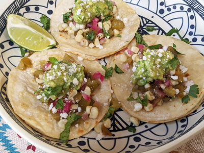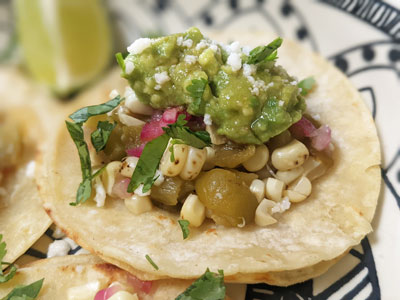 Hatch Green Chile, Corn and Guacamole Street Tacos