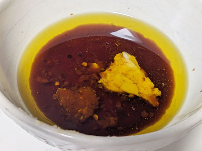 The miso vinaigrette is simple to make. You’ll need white miso, rice vinegar, tamari or soy sauce, olive oil, honey, salt and chili paste. I found white miso at Sprouts in the refrigerated section.