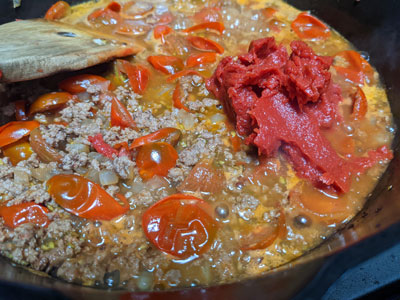 Add the tomato paste and stir well to combine. This will thicken the sauce.