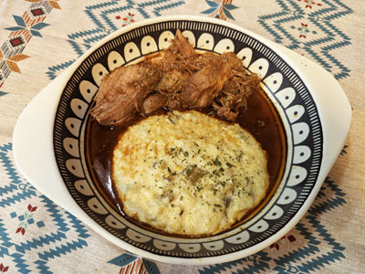 I ladled the polenta into a bowl and added the red chile pork along with some of the delicious red chile.