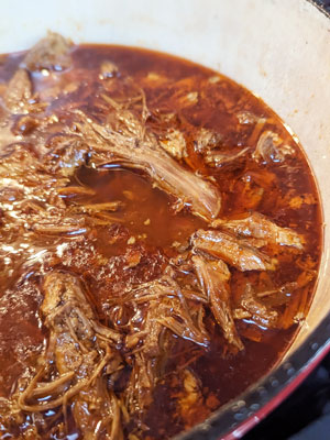 Here’s my pot of red chile stewed pork. It tastes so good with polenta!
