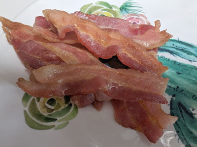There’s a cozy little restaurant “Hannah and Nates Market Cafe” that serves some of the best breakfast and lunch dishes in Corrales and Albuquerque. One of their signature dishes is the Heavenly Hash which is a mound of hash browns topped with cheese, bacon, sausage or ham, eggs cooked your way with red or green chile. They also make some of the best Eggs Benedicts in town. I always have a hard time deciding whether to order the Heavenly Hash or the Eggs Benedict, so today I’m combining the two with my own version of the perfect breakfast dish. It starts with hash browns that are cheesy and crisp on the outside topped with perfectly poached eggs with hollandaise sauce, crispy bacon bits and diced green chile. The combination is heavenly all right! Joe and I ate every bite, it was so good! But if you want a healthier version, ditch the hollandaise sauce as it is very rich in butter and egg yolks. I took several short cuts to make this timely dish easier with less mess. For instance using dehydrated potatoes cuts down the time it takes to make hash browns from scratch. Microwaving the bacon in less than 5 minutes while leaving no mess on top of the stove is a big plus! And I can’t say enough about using poaching bags; they are the way to go for perfectly poached eggs in only 4 – 5 minutes. It shouldn’t be hard to make breakfast this good!