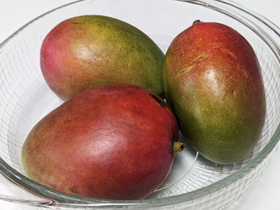 The first thing you need is some ripe mangos. Any fruit you use will taste better and blend better if it is ripe and softened. I usually set my mangos out on the counter until they feel soft. There are other varieties of mangos but this is what found today. I will need approximately 4 cups of mango pulp for this recipe.