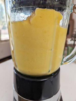 Blend on medium high speed until pureed. It should be smooth and slightly thick.