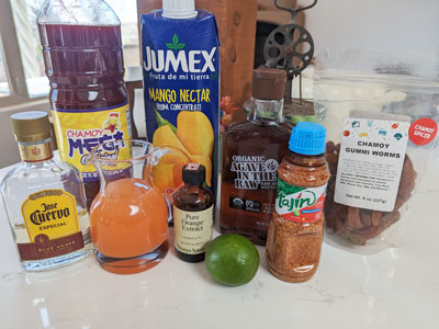 Garnish with Lime Slices and Chamoy Gummi Worms