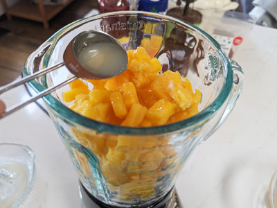 4 cups Mango, peeled, diced and frozen