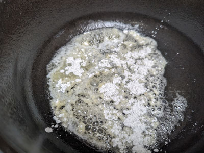 Once the butter and cornstarch begin to bubble and thicken, add a tablespoon of Better than Bouillon and stir to combine.