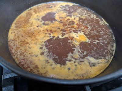 Use a small saucepan (I used a 1.5 quart dutch oven) to make the au jus. Start by melting 1 tablespoon of butter.