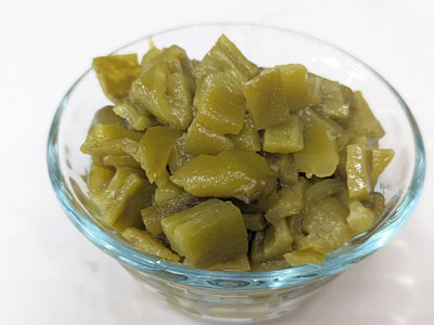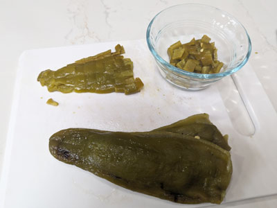 This is about 1/2 cup of chopped, roasted green chile that will be divided between 2 french dips.