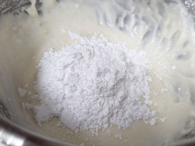 Add sifted powdered sugar, a little bit at a time mixing after each addition until you’ve added all of the powdered sugar.