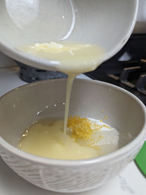 Melt 3 tablespoons of butter and pour into each bowl with the sugar/lemon mix.