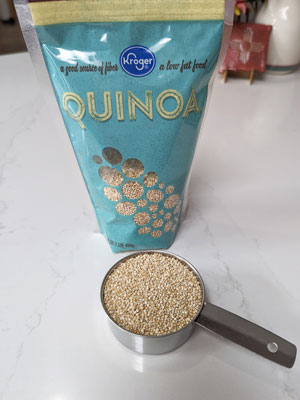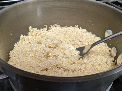 Fluff with a fork like you would with rice. Refrigerate any unused quinoa to use for other meals.