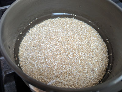 Rinse quinoa 1 – 2 minutes until the water runs clear without any bubbles. Cook quinoa according to package directions. * Once the quinoa was cooked, I rinsed it once more just in case any saponin remained even though it was not instructed to do so on the package.
