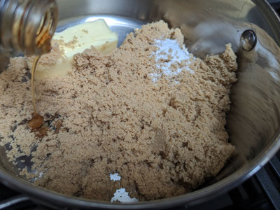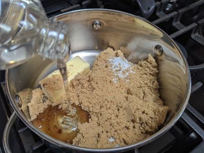 To make the custard: In a medium saucepan over medium heat combine the butter, brown sugar, salt and vanilla.