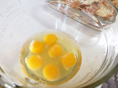 Crack six eggs into a big bowl. I used an 8 cup measuring bowl which was perfect for mixing and pouring.
