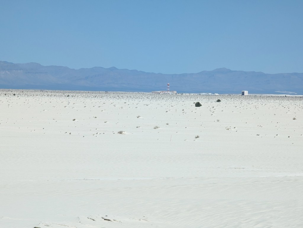 In 1941 the northern part of the Tularosa Basin was designated as the White Sands Missile Range. Part of that area lies the Trinity Site where the first Atomic Bomb was tested in 1945. You should check the website before you travel to White Sands as it is sometimes closed for missile testing.
