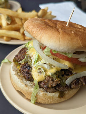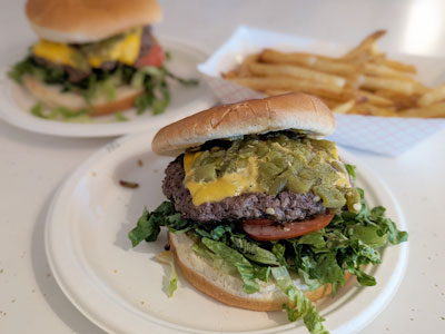 If there is anything I’m sure about, it’s that New Mexicans love their Green Chile Cheeseburgers! The green chile cheeseburger originated in NM and you can find one in just about every town across New Mexico. And every New Mexican has their own personal favorite. Joe and I are no different, we’ve embraced the challenge to find the best green chile cheeseburgers as we’ve traveled around the state. We have different opinions on the best burgers, however we both agree it’s hard to find a green chile cheeseburger that isn’t good. We’ve found differences on how the burgers are prepared, they might be smash burgers, flame broiled or seared on a griddle. They may offer a choice of cheese, while others offer different condiments. Any or all of these can alter an opinion on how they appear and taste. One of the main things that Joe and I look for in a great burger is the heat and flavor off the green chile. If the chile is too mild, it won’t elevate the burger, so what’s the point! The experience of eating a burger is also a component of our list. I love a good burger that I can eat without it falling apart and I hate eating in public when a burger is so juicy it runs down your arm. The most enjoyable burgers are paired with great fries. There are a few on this list that are outstanding. If you’ve ever had a NM Green Chile Cheeseburger, I would love to know what is your favorite burger and where you found it.