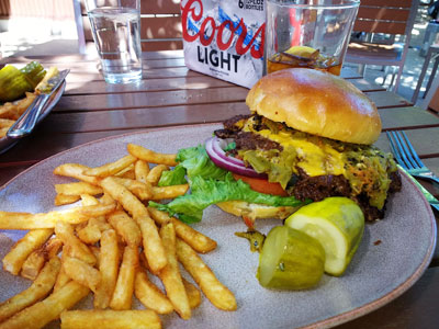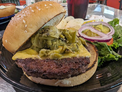 The Burger Stand at Taos Ale House – Green Chili Cheeseburger . . . Yes they spell it chili which would drive some New Mexicans to call blasphemy! However, I will give them a pass since the burger is so deliciously good! We love the beautiful drive to Taos and the surrounding area, it’s a charming small town with beautiful surroundings, local artists and galleries, plus a variety of restaurants. When it is time for lunch we get a burger at The Burger Stand. They use pepper jack cheese and a spring lettuce mix which is a bit different than most of the burgers we tried but it works well. Sit outside if there’s a seat available, it’s beautiful being outdoors in Taos!